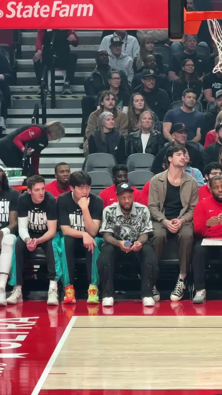 开云登录入口-静静等待机会!小吧拍到杨瀚森坐在利拉德旁 认真观察场上局势