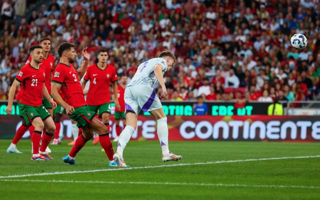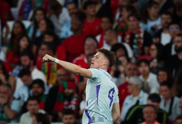 相比首轮主场2比3负于波兰队一战,苏格兰队保持首发11人不变。尽管实力上不如葡萄牙队,又是客场作战,但苏格兰队并不怯阵。开场仅4分钟,苏格兰人就获得两次角球机会。第7分钟,客队又获得角球机会。3号左后卫兼队长安德鲁·罗伯逊发出短角球,23号中场肯尼·麦克莱恩传中禁区。前插到门前,无人防守,苏格兰队4号前锋斯科特·麦克托米奈头球攻门中的,比分改写成1比0。